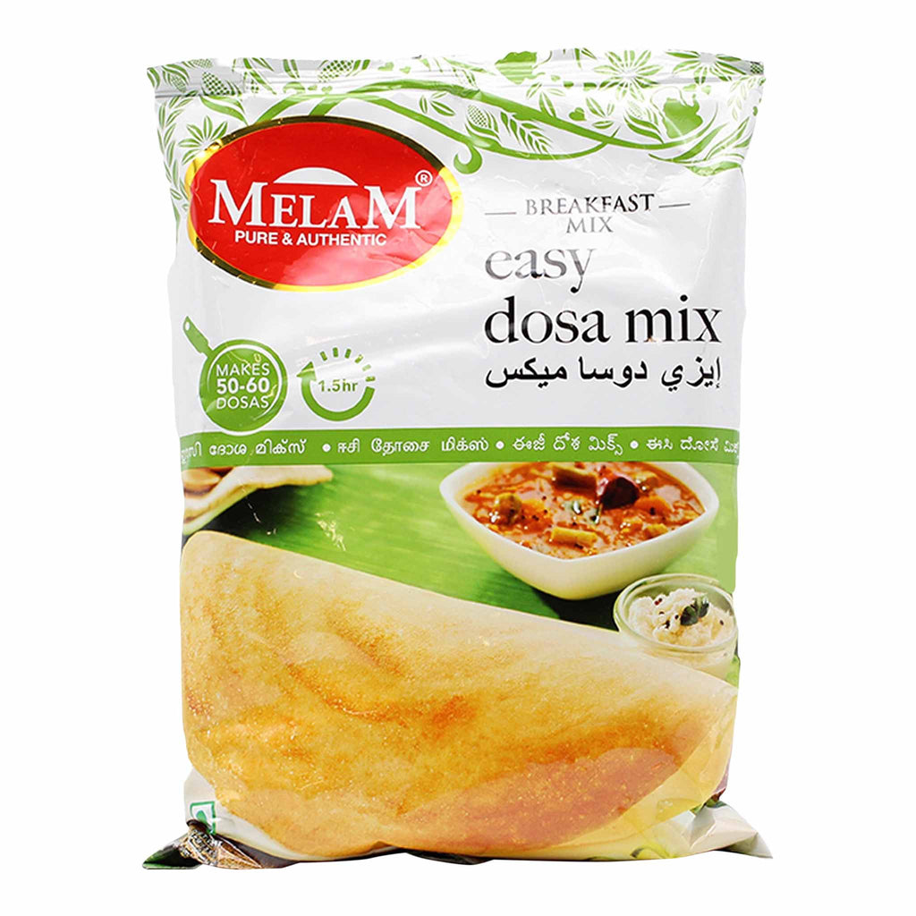 Melam easy instant dosa mix is a combination of semolina (cream of wheat) and ground rice. These thin, crepe-like pancakes are filled or eaten with spicy potato fillings. Dosa mixes are much more convenient because they save soaking and grinding time. This same mix can also be used to make thicker pancakes called uttappam, which the batter is mixed with chopped onions and green chillies before cooking. Enjoy this with coconut chutney or sambar.