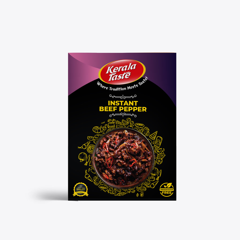 Instant Beef Pepper by Kerala Taste is a traditional Kerala-style spice mix designed to prepare spicy and flavorful beef pepper effortlessly. Made with authentic spices, it captures the bold taste and aroma of classic Kerala beef pepper in every serving.